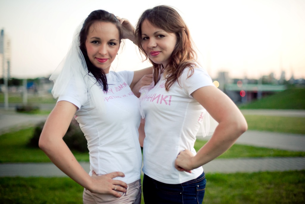 Делать или не делать девичник я сомневалась вплоть до самого девичника. НО! Воодушевившись отчетом Татьяны555 поняла «МНЕ ТОЖЕ НАДА!!!». Итак: по атрибутике было решено сделать подружкам майки белые с розовой надписью + маленькая розовая фата, и мне майку плюс пышная белая фата. Кратко расписание: суббота 23 июня, 19 00 у меня на квартире (БМку торжественно сплавила к маме помогать по хозяйству на все выходные), 20-30 – фотосессия, 22 00 – лимузин, 23 00 – до победы: клуб.