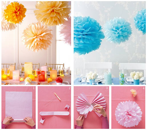 Помпоны можно делать из креповой бумаги или из фатина. Принцип изготовления там впринципе похожий.
