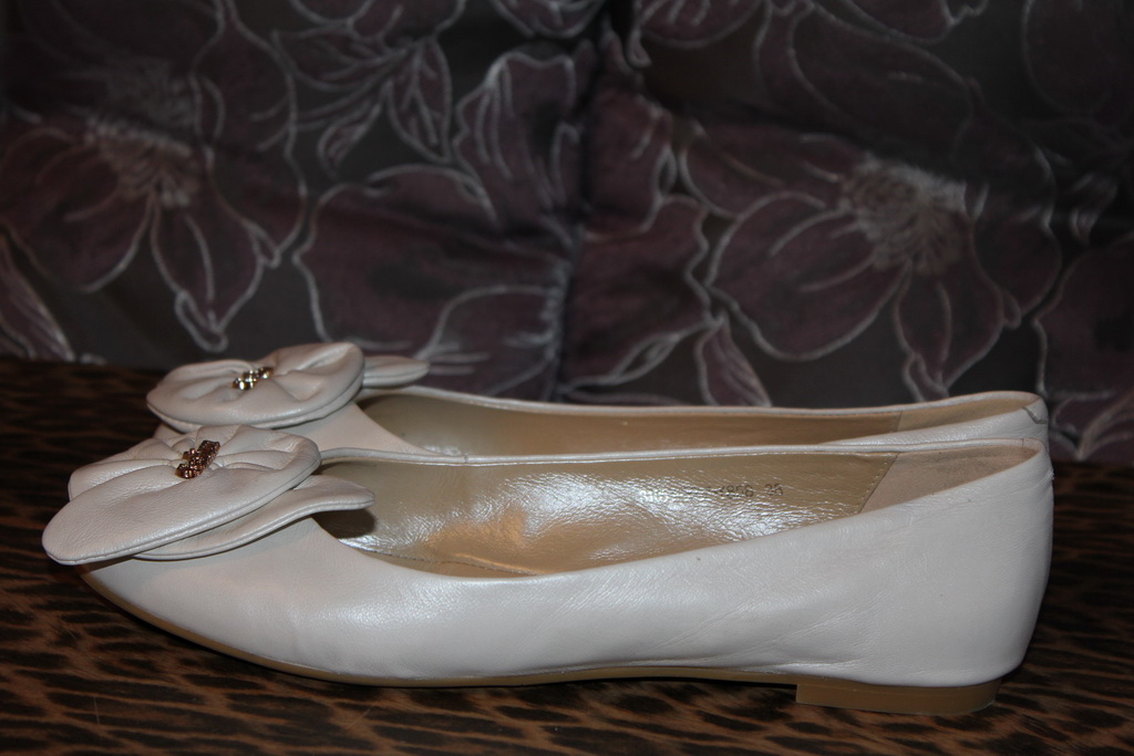 Хорошенькие туфельки. У меня 2 года назад подруга тоже обувала балетки, так как в жизни каблук вообще не носит, мне даже понравилось как фотограф обыграл туфельки на фотках.