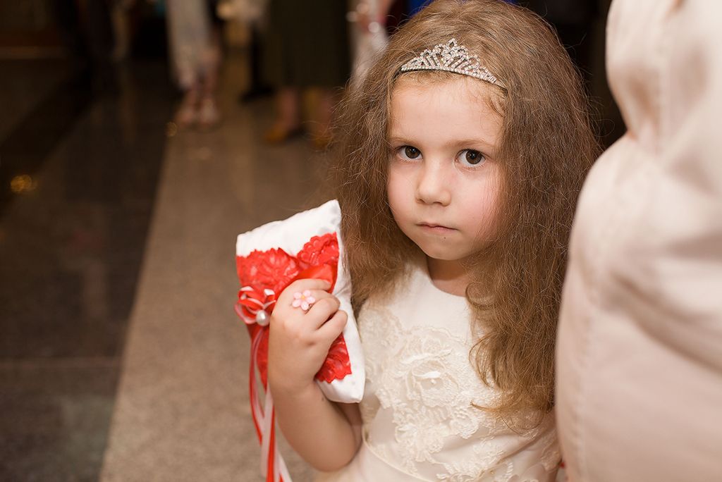 Пятница… Наверное как у всех невест это самый суматошный день… В пятницу я не выпускала телефон из рук, а мужа от себя… Мы докупали фрукты и всякую мелочь и самое обидное я не могла на свою ногу подобрать балетки, что меня мягко сказать выводило из равновесия, но всё таки я их нашла чему была несказанно рада!!! Вечер выдался не лучше, нужно было съездить за тортом и отвезти все продукты в кафе… Приехав домой мы начали собирать все пакеты… Это был ужас… С горем пополам сделали, а всё что не успели по мелочи отложили на следующее утро т.к. от всей суеты я не чувствовала «задних ног»…. Суббота… Проснулась я раньше всех в т.ч. и будильника… В бешенном ритме мы начали собираться… Голову мне пришлось мыть за 15 минут до выезда (квартиру для свадебной съемки мы снимали) т.к. не успевала помыть голову мне пришлось её сушить уже на ходу (водители наверное были в шоке)… Поесть я не успела… Опоздали мы минут на 5 и когда приехали Марина Датькова (парикмахер) нас уже ждала около подъезда, а мой муж поехал за моим букетиком… Мы быстренько поднялись в квартиру и немного осмотревшись приступили к моей прическе… Алина Табальчук (сопроводитель) приехала уже когда мы приступили к прическе… Прическу Марина мне сделала великолепную, показала всю длину моих волос, за что ей спасибо!!! После небольшой паузы и переговоров по телефону приехала Татьяна Титерук и приступила к преображению … К моему образу решили добавить красные губы, я не думала что это мой цвет, но всё таки решила пойти на эксперимент с цветом и доверится визажисту в этом вопросе и как оказалось не зря… Татьяна из меня сделала куклу… Обидно одно, что Митя не успел заснять меня в момент, когда мне делали макияж т.к. в это время Татьяна занималась моей свидетельницей, а мы мирненько фотографировались в соседней комнате с Татьяной Шкурдь (Курлович)… А Митя который уже приехал от мужа снимал аксессуары…. В конечном итоге Митя снимал как меня «якобы» гримирует свидетельница… Как я одевалась это был ужас… Моя свекровь прислала гостей вместе с мужем и когда мне это сказали я была в бешенстве… 2 пары колгот которые я брала с собой и порвала из-за того, что вышла из себя… И во всей этой суматохе мы забыли пригласить Митю для съемки одевания и пришлось снимать уже в одетом и зашнурованном платье и делать вид, что мне его шнуруют… Мне уже в этот момент не хотелось ничего и пришлось делать вид что всё хорошо (правда у меня это плохо получалось)… Съемка одевания была сделана далее съемка когда муж заходит в комнату ко мне было снято аж в 3 дубля… Когда я одевала бутоньерку, то намучилась сильно т.к. не могла её застегнуть как ни старалась… Закончили со съемкой показались гостям спускаемся и о ужас машины стоят «пустые» я была в шоке столько народа, а нарядить было некому (свидетельница была постоянно со мной и помогала мне во всём)… Ехали мы в ЗАГС совершено незаметные… Всё время я ныла и жаловалась на происходящее, ещё как на зло у нас глохла машина во время движения из-за проблем с электроникой… Приехав в ЗАГС мне говорят что мои родственники ещё не приехали причину уже не помню… Напряжение нарастает и мои нервы начали сдавать, я чуть не разревелась, но смогла себя сдержать…пришел Митя для съемки репортажа мне было тяжело сосредоточиться и собрать свои мысли в кучу… Наконец приехали мои гости при
