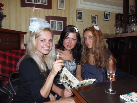 Еще за 2 недели до этой пятницы у меня одна подружка спросила,мол буду ли я что-то делать,я не раздумывая ответила -Нет. Много дел, нужно много денег,короче, не до него мне было..И тут вернулась моя свидетельница с отдыха, попросила выкроить для нее вечерок,все обсудить ,поболтать по душам. После небольшой переписки я согласилась :D :D :D Леська сказала,что выведет :D меня из холостой жизни! Я подумал..мммммммммм...у меня мини-девичник! Теперь я понимаю,почему она меня так спрашивала то про клубы,то про кафе,рестораны,где мне хотелось бы посидеть)))))))) Тогда я не придала этому значения и мы выбрали уютное тихое местечко...была выбрана "Моя английская бабушка". Мы пришли,заказали шампусика :alc: И тут официантка, спрашивает,а когда остальные подойдут,мол сколько шампанского охлаждать? Я смотрю на Леську и хлопаю глазами :o ..а кто остальные? Моя свидетельница надулась и чуть не прибила официантку...вот,испортила сюрприз :evil: :twisted: :twisted: :twisted: У меня задражали руки.... И тут Леська достала что-то с сумки,спрятала в ладошке,сказав мне,что все на подходе :sm_color: :sm_color: Я смотрю на дверь..и входят все мои самые лучшие,самые любимые подруги!!!!!!!!!!!!!!!!!!!!!!!!!!!!!!!!!!!!!!!!!!!!!!Подходят к столу,поздравляют меня! И тут слышу: Насчет три..одели! Они достали белые цветочки-бантики,одели на голову,а мне вручили самый большой..нечно напоминающее вуалетку! Я была очень счастлива! С этого момента смех не прекращался,шампанское лилось рекой! Было очень весело! :alc: :alc: :alc: :multi: :multi: :multi: :multi: Домой вернулась в три ночи и заснула с улыбкой) Проснулась с головной болью и жутко довольная! :girl:
