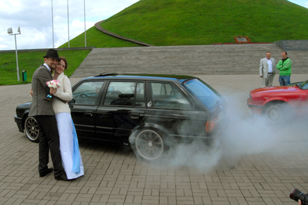 у нас тоже есть пару фоток на тематику свадьба+БМВ))) с колечками.