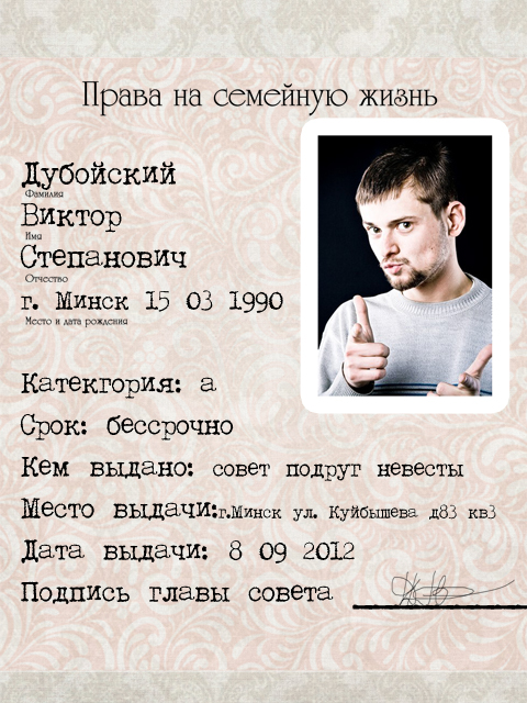 КРУТО, а я своему зачетную книжку делала (хранит до сих пор  ), выкуп бы связан со сдачей экзаменов на должность идеального мужа.