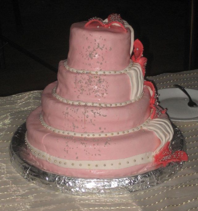Милые девочки, заказывая мастичные торты тщательно выбирайте изготовителя. Потому что мастичные торты тоже бывают разными. Вот вам для примера образец "кондитерского искусства", который встретился мне на одной из свадеб! Помимо того, что торт был кривой и страшненький, он был еще и несъедобен!