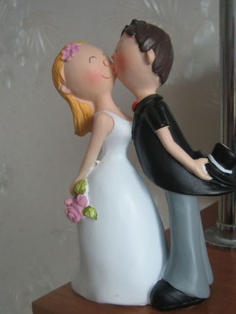hel.sanliya не знаю насчет мастеров таких, это только если как на детские и тематические торты делают фигурки людей и персонажей наверное заказать, но это в кондитерской где торт будите заказывать надо разговаривать и принести им фото что нужно сделать. Фигурка будет по ходу съедобной. Ну или например бюджетный вариант хэнд-мейд, бумажные фигурки:      Мне кажется что тут все просто, нашли цветную картинку героев которые вам надо и чтобы были например свадебные наряды. Пошли в центр печати и распечатали цветными на самой плотной бумаге. Вырезали по контуру, можно чтобы наверняка еще приклеить на картон. Потом можно взять обычные деревянные шпажки для кебабов и приклеить туда фигурки. Все и просто втыкаются в верхушку) Можно распечатать черно-белые и раскрасить. Можно не просто сделать фигурки, но и добавить гирлянду например как на фото. Или вот еще что я нашла: эти ребята я так понимаю скачаны в интернете, распечатаны и склеены. Я встречала в интернете множество таких paper dolls для бесплатного скачивания. Плюс таких фигурок они объемные)) правда не сильно долговечные, зато бюджетный вариант)