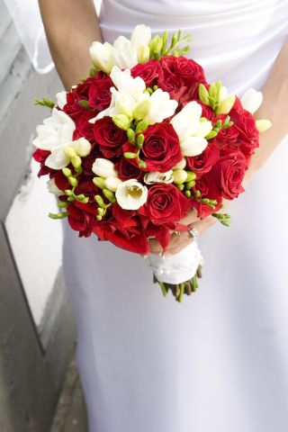 Единственное что...не знаю. Букет тогда из красных роз не сделаешь...а они мне так нравятся... Красные розы один из самых распространенных цветов, тебе могут подарить их на любой праздник, да и после свадьбы может целая охапка остаться, особенно если намекнуть гостям, что ты предпочитаешь красные розы. В то же время красный можно сочетать с зеленым, вот парочку картинок