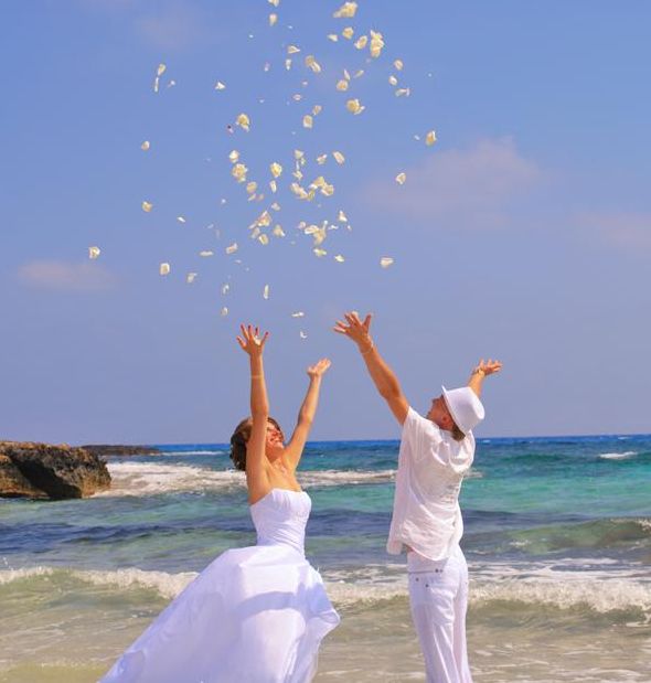 Очень красивое платье и вправду намного лучше греческих. Правильно Valery сказала, как пена морская. Так что я бы не переживала на твоем месте, к тому же ты вродебы говорила что вы не будете все время по песку ходить, сама церемония ведь будет на плащадке и ты будешь в туфлях. Вот парочку картиночек, еще были и где жених был в костюме, но басеком, но как-то мне кажется жарко в пиджаке