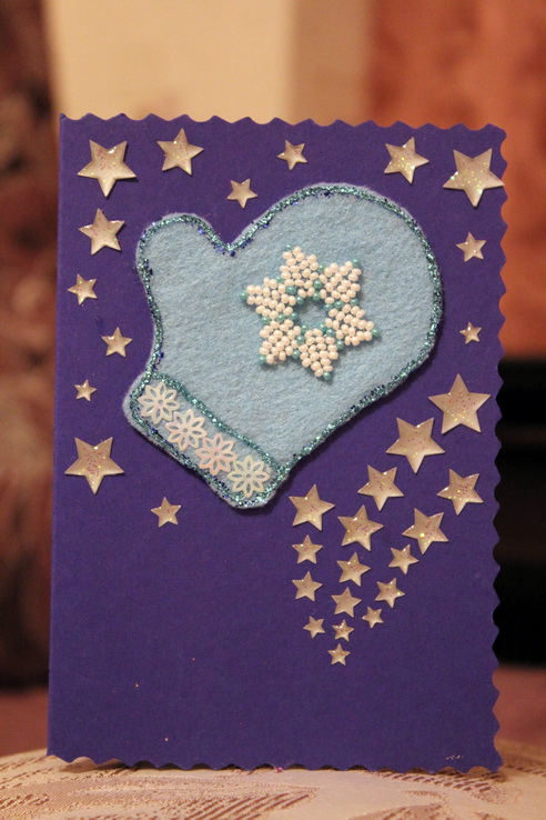 Отличные открытки, а главное сделанные с душой. особенно первая понравились и та которая с варежкой. Все очень стильно.