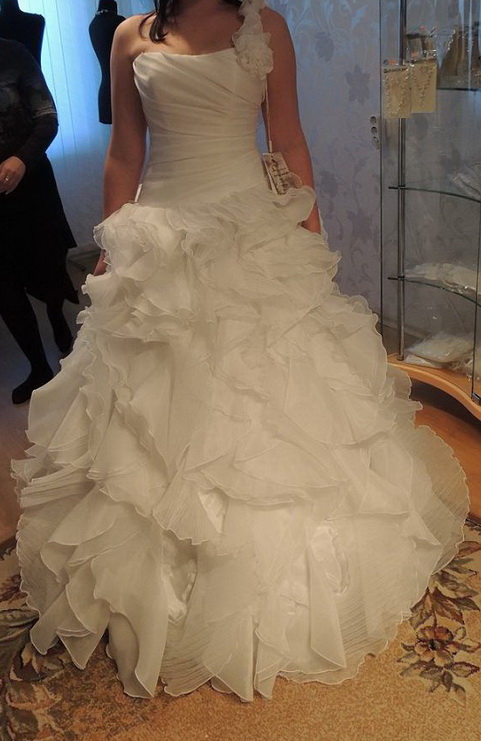 Платье отличное и тебе очень идет  Поздравляю! А смотри, цветочек возле шлеечки снимается или нет? Если снимается, то я бы наверное лучше без, а если не снимается, то благодаря цветочку шлеечка смотрится так гармонично!
