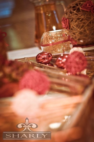 И еще наконец-то определилась с цтевом свадьбы.... Это будет (не знаю как правильно называется цвет...) что-то типа терракота (мягкий красный) и золотой... я думаю для осенней свадьбы в самый раз)) Вот фото оформления в таком цвете, которое мне понравилось. Но украшать планруем сами... Может кто подскажет, стоит ли самой украшать, или довериться профессионалам? Цена у них неоправданно завышена... Вложение: