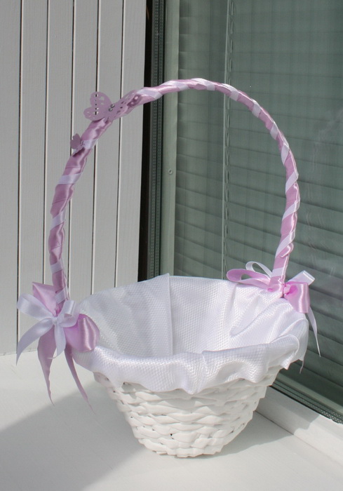 корзиночку я сама плела из самого простого материала, обычных газет) а вот и букетик, я его споймала на свадьбе года полтора назад...добавила немножко своих цветков, бабочку и ленточки)