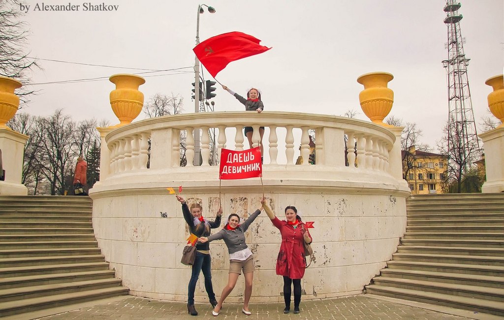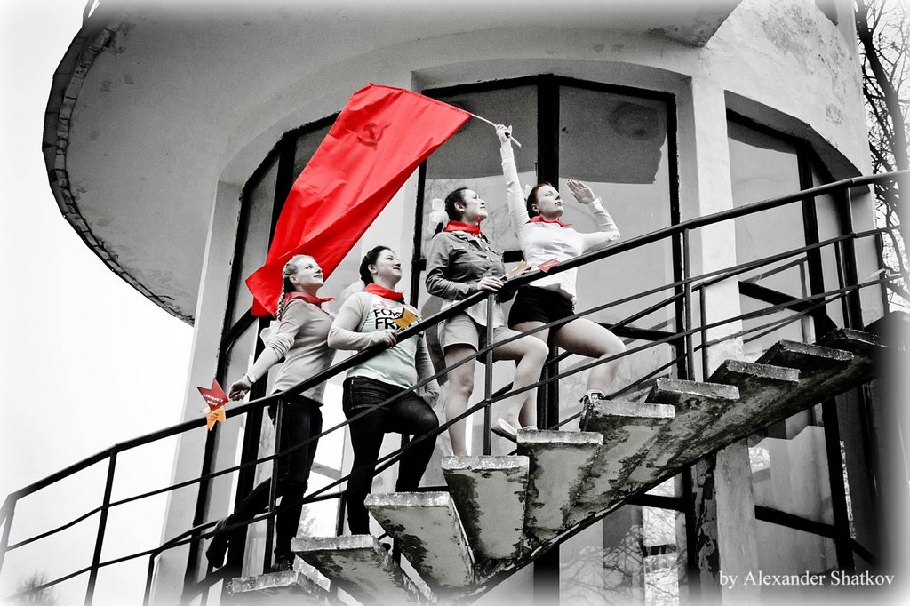 Kris tolstik_nastyaДевичник прошел шикарно, фото правда еще не все есть, нету времени до фотографа добраться. Встречались в парке Горького, все при параде: бантики, пионерские галстучки и позитив =) Я шевствовала с советским флагом в переди процессии, подружки с транспорантом "даешь Дивичник" и флажками с лозунгами ... Рассказывать не буду по фото увидите =) После фотосессии поехали в Репаблик, он конечно мог бы разочаровать т.к. отношение к посетителям ужасное, под конец концерта ни с того ни с сего врубили свет и начали проверять паспорта, у одной подружки его не оказалось, хотели ее выгнать . Мы это конечно расценили как комплимент, и все же целой толпой (подошли еще и знакомые которые организовывали канц) заступались за нее. В итоге концерт сократили - гады! А нам предложили бесплатно остаться на ретро-дискотеку, мол дувечки круто зажигаете!. Но мы бы не остались даже если бы нам заплатили за это!! После поехали на Октябрьскую встретились с нашим Мальчишником =) Правда по дороге отбивались от 2 других "мальчишников " =) На октябрьской меня попросили свернуть флаг... ну чего и следовало ожидать... Вобщем оттянулись круто
