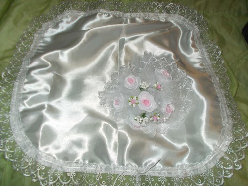 Подушка для колец 40 тыс. Рушники для сватов (2шт.) и рушник хлеб-соль - 100 тыс. Букет-дублер - 40 тыс. Платок на смену фаты - 90 тыс. Ползунки (2шт. розовые и голубые) - 40 тыс. Мешок для денег (очень удобно) - 40 тыс. Набор для выкупа - 35 тыс.