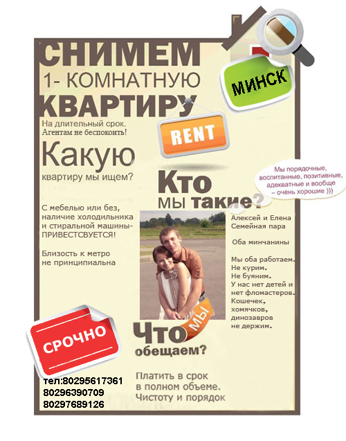 dolb9sha, а скинь мне тоже плиз  , А то мы видимо какие-то лохи, но найти ничего не можем. Мы и в агенства обратились, и объявки на сайтах, и через вк, как только не ищем, 2 месяца найти ничего не можем уже...