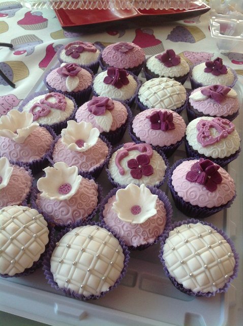 Вот моя верхушка и капкейки на фиолетовую свадьбу. Кроме этих капкейков были еще и с кремом сверху. нео фото пока нет.