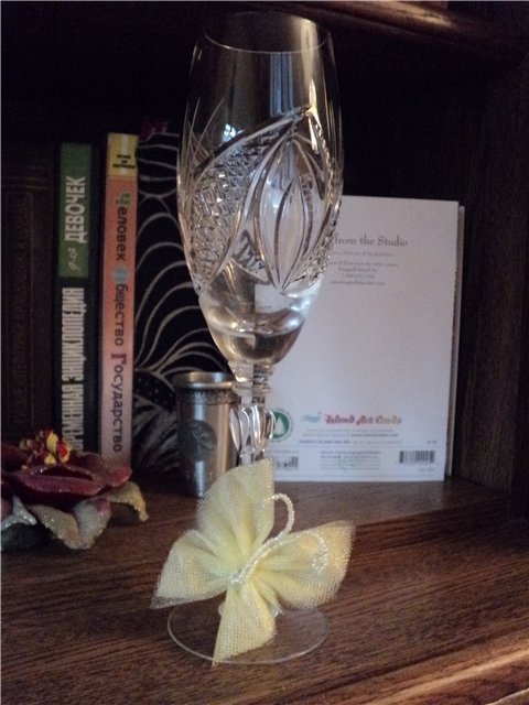 Бабочки хочу использовать также на бонбоньерках, хочу что-то похожее на последнюю картиночку (так что ты опять угадала ). Карточек рассадки, думаю, не будет, 7 человек и так рассядутся Бокалы с бабочками смотрятся очень красиво, только не знаю, будут ли у меня такие большие бокалы или маленькие, что-то ближе к рюмочкам, т.к. половина девочек, в том числе я и хозяйка, так сказать, помещения практически не пьют, остальные тоже не большие любительницы. если всё-таки решу брать настоящие бокалы, тогда буду "мутить" что-то, подобное на картиночки 3 и 4.