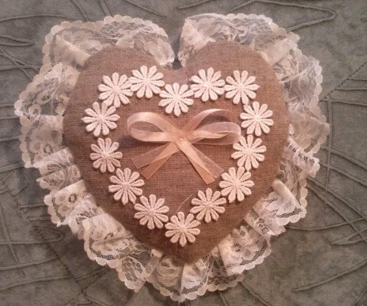 Девочки, вы меня озадачили))) Все-таки обсужу этот вопрос с администратором при следующей встрече. Но все-таки надеюсь, что свадьбы друг другу мешать не будут. Как правильно отметила spoila, залы находятся достаточно далеко друг от друга, и у каждого есть свои входы. А пока сброшу вам фото подушечки для колец. Наконец-то ее доделала  В центре бантика хочу еще жемчужинку приделать. Но это мелочи)) Очень хочется узнать ваше мнение. Только честно говорите))