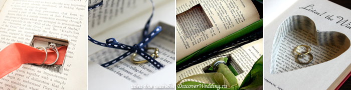 А еще на фотосессию Квардатки по случаю годовщины мы вырезали в книге окошко побольше и заполняли его цветами яблони. Кольца на цветах смотрятся очень нежно. Сейчас поищу фотографии и скину сюда