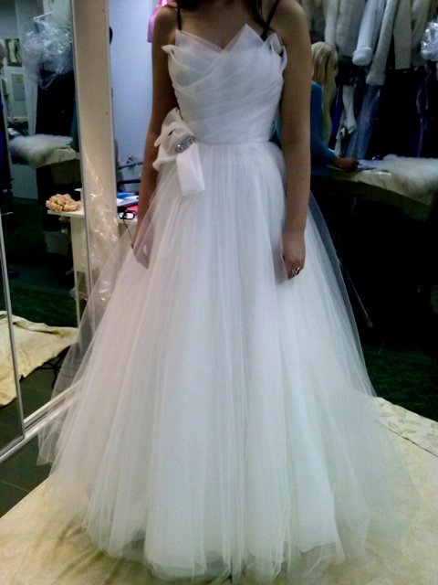 Lapyshka, я сама не очень довольна, как мнея в нем сфотографировали)Хотела сбоку, чтобы было видно шлейф, силуэт. А получилось не совсем понятно)) Ну и цвет не тот. Но все равно мне оно оочень понравилось. Как-то сразу стало в нем комфортно и легко. И эти кружева по подолу платья...очень аккуратно смотрятся) И цветы на талии сзади) Буду еще искать, чтобы окончательно определиться. Хочу во вторник и в среду съездить в несколько салонов, а потом с подругой заедем еще раз померить это платье))