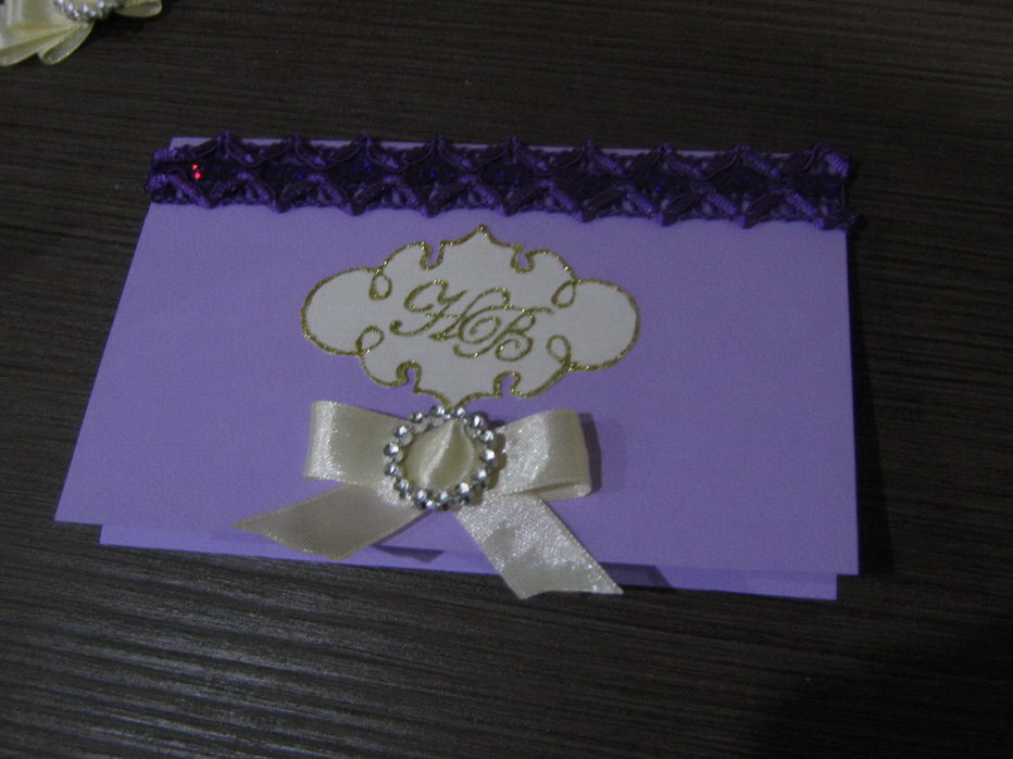 мне сразу как-то больше первый бантик понравился, но на пригласительном лучше смотрится второй. лаконичнее, поддерживается горизонталь, заданная сверху полоской кружева.