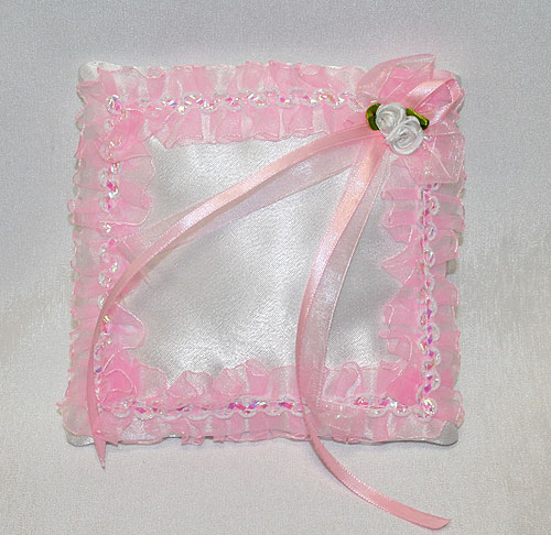 Вот такая подушечка для колец будет  может сюда ещё бусинки для колец добавить или бантики?