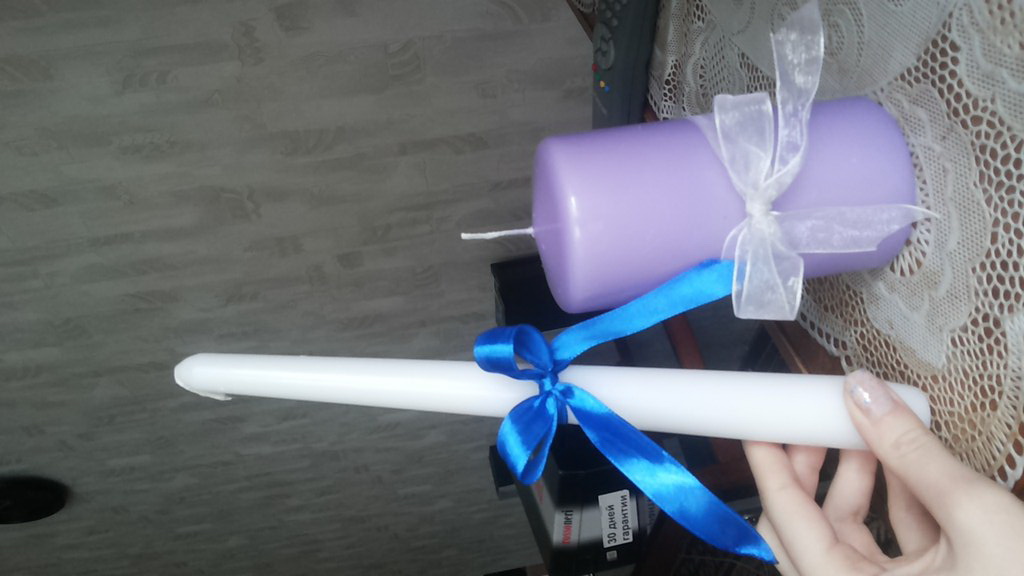 Nastassia_S класс! Минималистично в тематике вашей свадьбы ) мне нравится! А вы так и хотели свечку большую фиолетовую ? я бы ее синей сделала! и белый бантик )