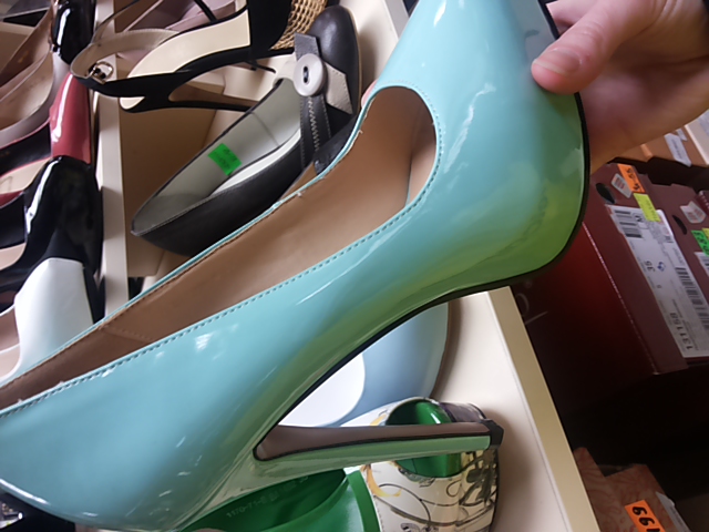 Кать, увидела сегодня а ЦУМе. На нижней фотке туфли ближе к зелёному, но каблук ниже. Первые -- чисто бирюзовые, а телефон поменял их цвет на голубой