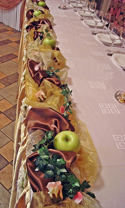 Для Вашей темы «Яблочки», могу вам подсказать очень здоровский зал - ресторана «Пан-Хмелю», я бы сказала, что этот зал не требует вмешательств декораторов))) хоть, мы сами таковыми являемся!