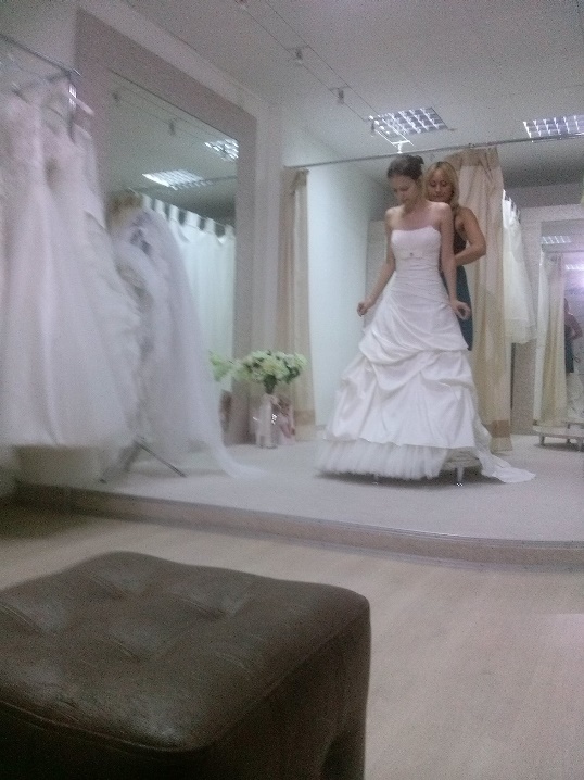 Да у меня как-то таких мыслей ни на кого не возникает))) Т.е. фотки все классные, мне трудно выбрать... Не думаю, что у нас возникнут какие-то проблемы по общению, меня в принципе ничего не смутило - и главное (!) ничего не смутило Диму (а его раскрепостить думаю будет в разы сложнее чем меня). В общем, спасибо девочки за мнения! Подгоняю новую тему для обсуждения! Платье! Я обошла уже наверное больше 10 салонов, сегодня я надеюсь будут последние два! (честно-честно ) А то что-то не могу остановиться)) А платья-то свои я выбрала в первом и в четвертом салоне))) И как-то сначала была уверена полностью в первом, но чем больше думаю, тем больше сомневаюсь. Платья такие разные и оба мне нравятся.... В общем выношу на ваш суд, надеюсь услышать ваши мнения! Сразу скажу что фоткать нигде нельзя, поэтому фотки очень корявые, из-под полы что называется, и первое платье на мне "не сидит" - надо подключать фантазию!