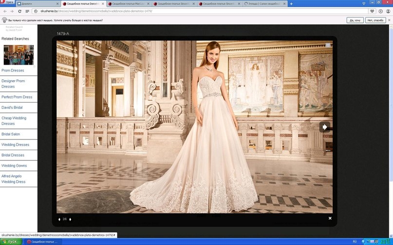 2 салон это , туда мы забрели случайно так как время было свободное) настроение там сразу улучшилось, так как к разочаровало( здесь мне понравились 4 платья, средняя стоимость там покупка от 800, прокат от400.. Мне понравилось последнее, но там очень много достойных вариантов и девушка просто замечательная попалась) но последнее красивое и село отлично..но у меня страх номер один,что выпадит грудь во время свадьбы и танцев....я понимаю что это очень наврятле..особенно с отсутствием груди)))но.....меня это будет смущать(