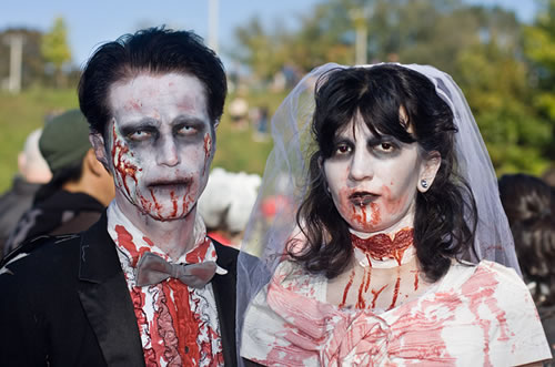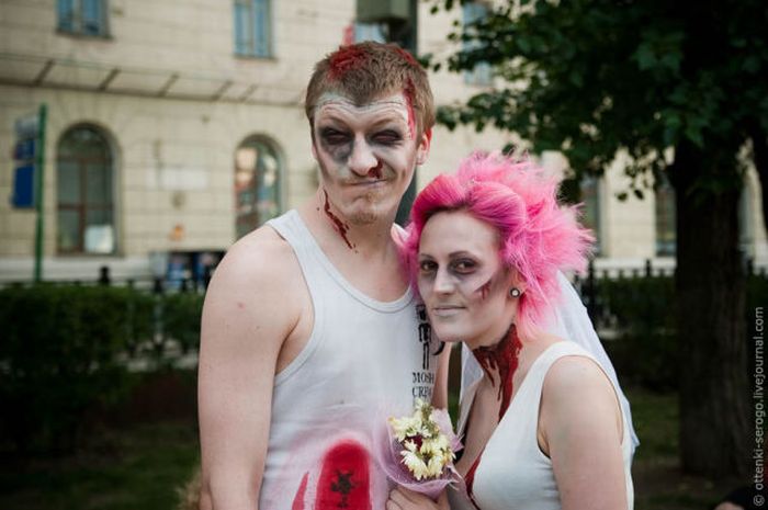 очень сложная тема - зомби. тут если образы перегрузить - получится бомжи грязные и безкусно может все получится. а так, чтобы красиво, стилько и стебно получилось - это оч кропотливо все продумывать надо.