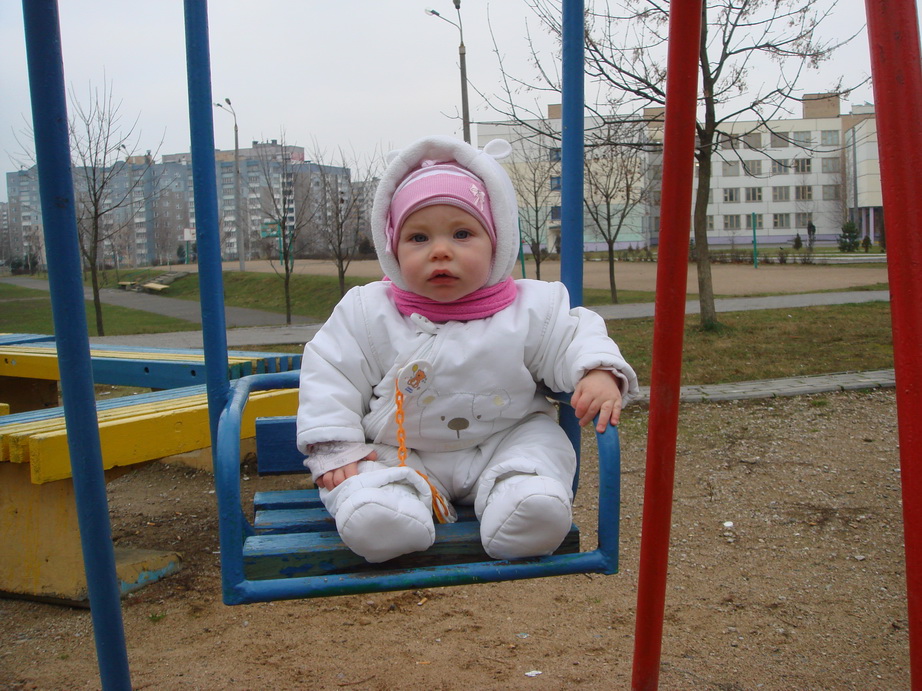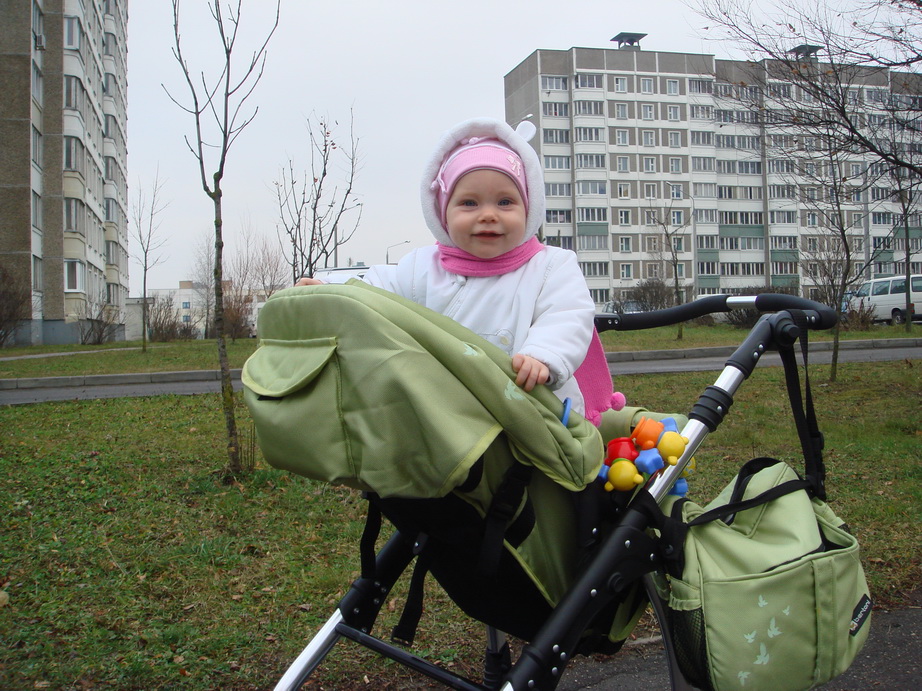 Спасибо! Егоза - это не то слово! В коляске мы только вот так как на фото и ездим. И то 10 минут. Потом ездим на маме. :) Скорей бы похолодало: я сапожки зимние ей уже купила. Бум топать. Хоть спина не так будет болеть.