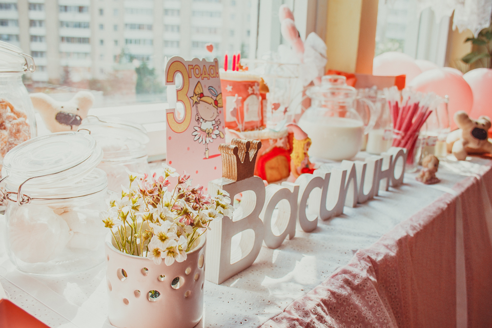 Замечательные у вас праздники! У нас первый день Рождения прошел на море в Паланге, так что особых фотографий нет. Только что на песке Сашеньке 1 годик и радостный ребенок. Праздновали с бабушками и дедушками, а себе сделали фотосет. Второй годик мы праздновали в стиле Маша и медведь. Приглашала девочек-оформителей, шили себе одинаковые наряды. Мы с мужем против фотографий ребенка в сети, поэтому могу показать только фотки антуража. В этом году трехлетие в сентябре. Думаю над чем-то грандиозным, но при этом не хочу повторяться. Возможно сделаем фуршет в Ботаническом садике в стиле морской вечеринки. Ну и традиционный фотосет.