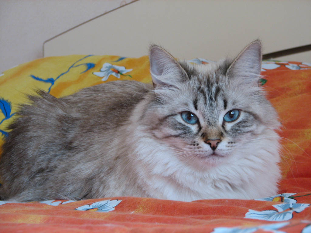 похвастаюсь своими котейцами, у меня аж 4 штука!! кошка мама и 3 котика-сыночка :о) невские маскарадные красавцы