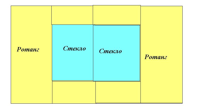Так я ж и спрашиваю... ты хочешь чтобы просвечивалось или нет? у моих родителей шкаф со стеклом и ротангом, ротанг внизу, а стекло ближе к середине, так что деть не достанет