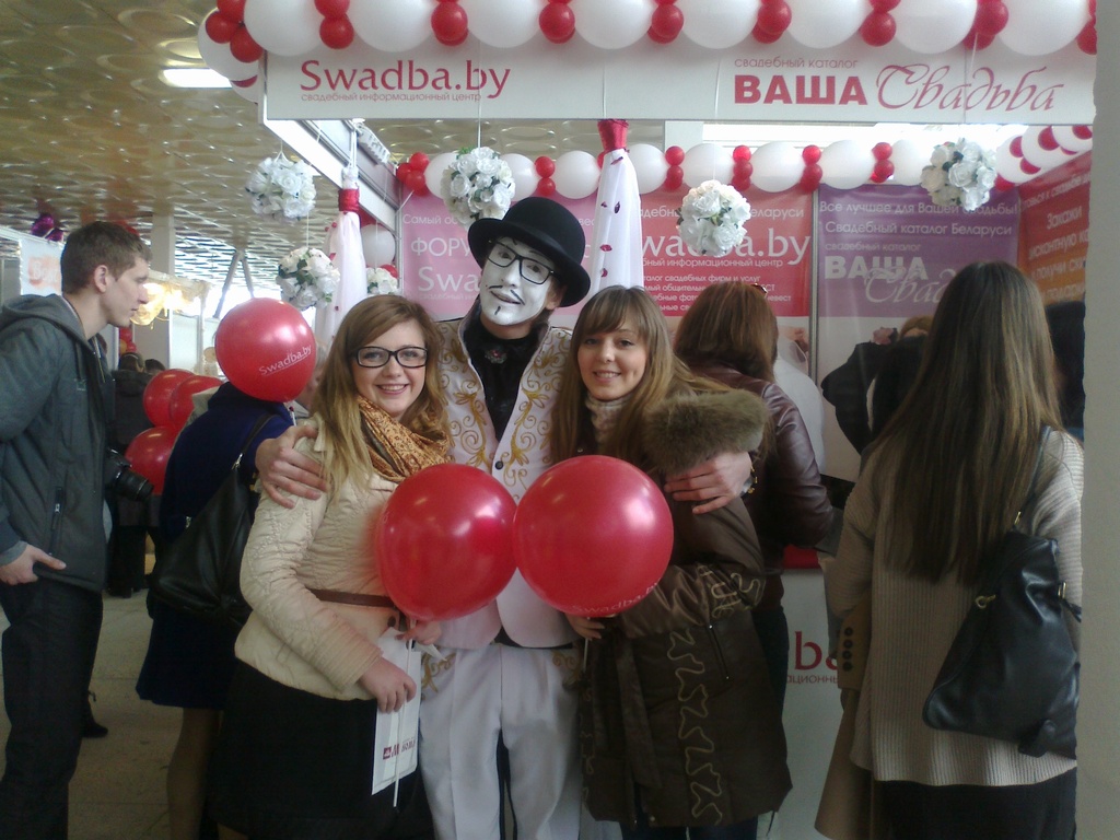 Ох ты блин, как-то я потерялась и не поделилась столькими новостями Во-первых, мы купили костюм жениху!!! В Короне на втором этаже, магазин Акцент. Ооооооочень нравится, еще раз убедилась, что именно то, что понравилось вначале и надо брать.. как-то ничего лучше потом найти не получается, но может это только у нас так Кстати, были в магазине Пьер Карден в Европе.. Магазин вообще не о чем, костюмов стоящих я не увидела, выбор не очень Сегодня с милюлей и Melnikova ходили открытие свадебной выставки. Визиток, флаеров надавали тьму, много было стендов свадебных салонов, фотографов, видеографов... А как приятно было увидеть стенд Swadba.by  Мы не могли не сфоткаться  Вложение: