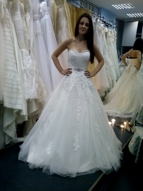Девочкииииииии, спасибо вам за теплые слова!!!!!! Как же приятно!!!!!! Ну все, договорчик на платье заключен! Прописали все волнующие моменты, так что теперь могу быть спокойна хотя бы на некоторое время. Подгонку договорились начать с конца апреля-начала мая. К этому моменту уже надо будет обязательно купить туфельки (еще одна головная боль  Чувствую, не просто будет их найти). Платье мне отдадут за 5 дней до свадьбы, вернуть нужно будет через три дня. Корсет подошьют, длину уберут, и все это прописали в договоре) Напоследок померила платьице еще раз. Боже, как оно мне нравится!!! Как Я себе нравлюсь в НЕМ!!! В этот раз мне немного опустили корсет, и верхняя часть так смотрится намного лучше, на мой взгляд. Ну вот, оцените) Думаю, когда вошьют чашечки моего размера будет вообще конфетка Быть невестой афигенно!!!!!!!