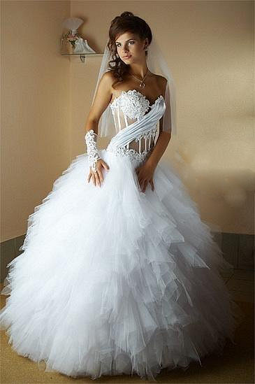Блестит она так от вспышки! на самом деле ткань дорогая и в живую смотрится намного богаче чем фатин! Мне это платье очень нравится, а от корсета я вообще болдею!!! И родителям с подружками очень понравилось! А для меня это главное!и  Вот это платье на невесте в готовом виде при хорошем освещении)