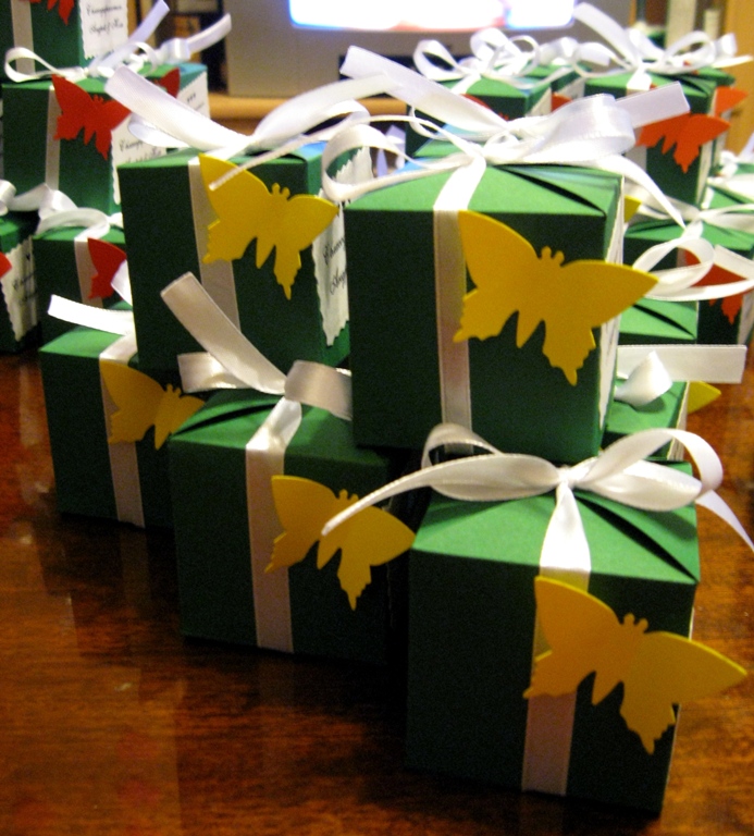 Юлия-я, я от бонбоньерок просто в восторге. И от идей с бабочками тоже, надо предложить такую идею БМ, а то он сильно против плана рассадки. Таблички для фотосессии тоже классные