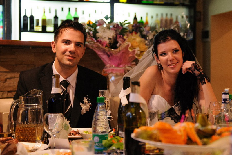 Итак, продолжение отчёта (с момента приезда в кафе). Возле кафе нас встретил ведущий, мы зашли, а наши друзья нас встречали. Подарили нам подарки, поздравили и мы сели за стол. Еда была обалденно вкусной, до сих пор вспоминаю и облизываюсь. =))) А горячие блюда – вообще отпад! Наши гости порадовали своим энтузиазмом, они отжигали по полной программе, особенно некоторые из них (по большей степени с моей стороны). =))) За что я им МЕГА-благодарна!!! Всё было настолько весело, настолько позитивно! Ведущий проводил такие прикольные конкурсы, что наши друзья с огромным удовольствием в них участвовали! В конкурсе на мальчика/девочку сначала победила девочка. =) Но после окончательного вклада свидетеля победил всё-таки мальчик. =)) Хотя мы ещё собирали на двойню (свидетельнице в декольте), но всё равно в ползуны накидали больше. =)) Букет мой словила свидетельница. =) Она была так рада этому, что чуть не прослезилась! =) А подвязку словил одноклассник мужа. Хотя у него и так уже свадьба в сентябре будет. =)) (и мы уже приглашены). Ещё хочу сказать отдельное слово про наш торт! Это нечто! Он настолько был вкусным, что разлетелся мгновенно! Мы хотели забрать кусочек домой, чтобы угостить моего папу, но не осталось ни крошечки! Решили сделать точно такой же торт на 2-х летие моей дочурки, которое будет 4 июня. Огромнейшее спасибо моей знакомой Марине, которая пекла эту вкуснотищу! Подводя итог, хочу сказать, что наша свадьба превзошла все мои ожидания! Я даже и не надеялась, что она будет такой весёлой, классной! День пролетел мгновенно, но всё равно останется в памяти ещё на долго!