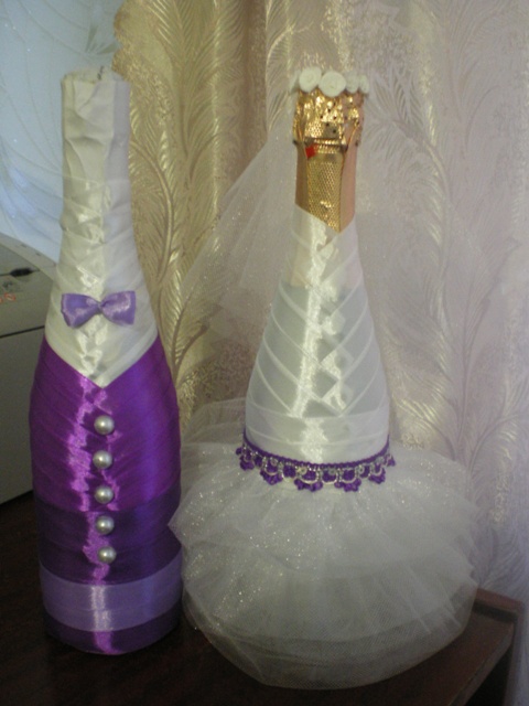 Martinika-Marine прости за плагиат Строго не судите, сама вижу очень много касяков: 1. т.к. бутылки из-под разного шампанского - горлышки отличаются 2. атласная лента просвечивается 3. ... пункт для вас девочки  (может потом руки дойдут исправить)