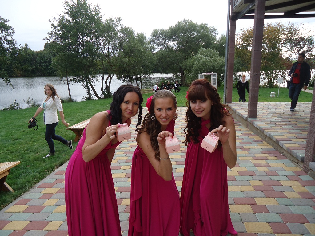 Да, действительно очень красиво. Полскажи, пожалуйста, где ты платья подружкам заказывала.