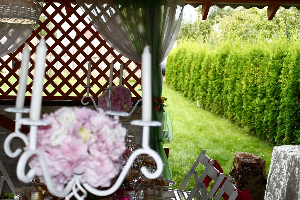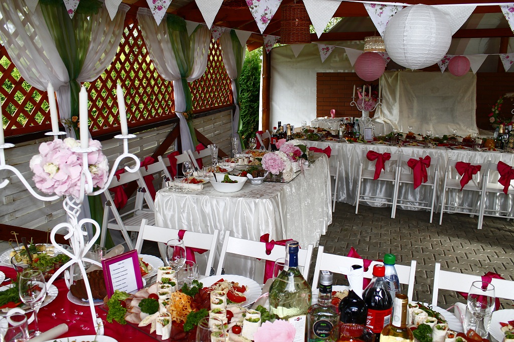 Это был второй принципиальный для меня момент. В своих мечтах я видела не только роспись на свежем воздухе, но и банкет. Усадеб с подходящей террасой я нашла только 2 (Постоялый двор и наш Тихий берег). Вариант установки шатра мне не слишком нравился.