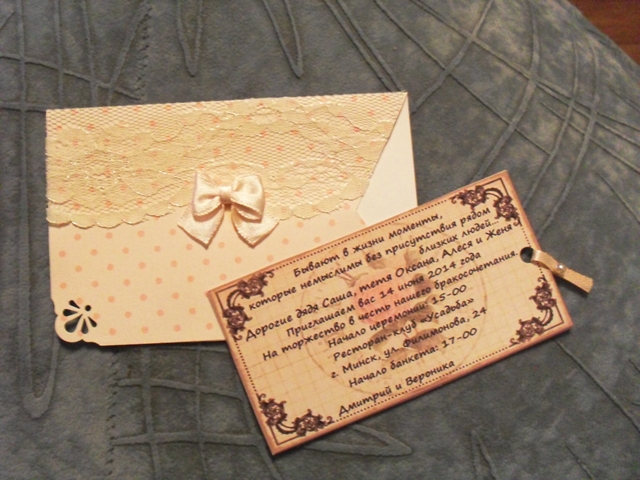 Наконец-то доделала пригласительные) Словила себя на мысли, что так давно не хэндмэйдила...Поэтому наслаждалась каждым пригласительным, настолько приятно что-то мастерить своими руками! Делюсь отличным способом, как сделать бантики. Конечно, можно спросить совета у Анастасия stom, ведь она, как хозяйка бантиковой свадьбы, лучше всех в них разбирается  Но на всякий случай кидаю ссылку. Я сама не раз видела этот мастер-класс в контакте, но обратилась в нему только тогда, когда понадобилось сделать бантики) http://stranamasterov.ru/node/88739Делюсь фото готовых приглосиков