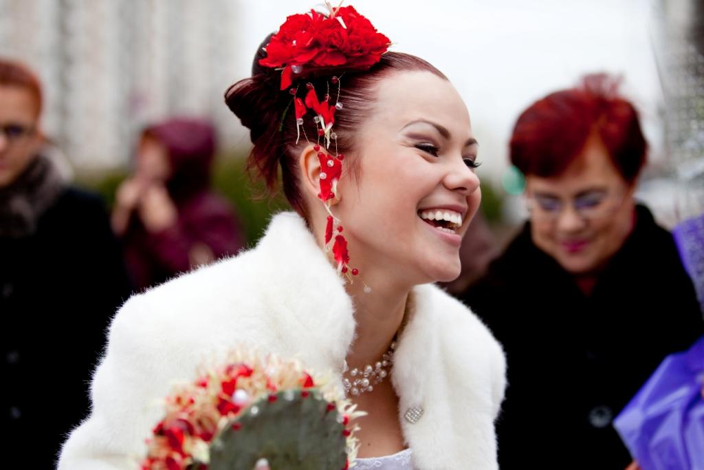 Часть вторая - официальнаяВ ЗАГС было очень весело идти - со всех углов выползали наши гости, в окнах торчал народ ) К скольки мы туда дошли - не имею ни малейшего представления ) Единственное, что помню, это чьи-то слова о том, что до росписи 10 минут, а мы ещё дома  Значицца дошли мы до ЗАГСа, а вокруг - никого, ни одной пары в свадебных платюшках. Я таааааак обрадовалась сему факту, что вам не передать. Когда мы зашли в оное помещение, то там я увидела ещё одних желающих расписаться. Кто-то из их гостей спросил:" Вы на 12-00?". "Неа, - отвечаю я и нагло улыбаясь иду вперёд ))) Встречает нас тётенька, уточняет время росписи и говорит сдавать верхнюю одежду в гардероб. Значицца сдали, я оборачиваюсь - а вторую пару уже ветром сдуло ))) Нас с любимым отправили в комнаты жениха и невесты. Наш оператор Митя спросил у меня, что я чувствую. Какие, к чёрту вопросы???? У меня нервы уже на пределе!!!! Что-то ему буркнула и продолжила увлекательное занятие по нарезанию кругов по комнате. Наконец-то нас позвали к залу регистрации. Тётенька говорила там что-то, куда стать, куда нет, кому слова благодарности говорить, куда спиной не поворачиваться. А у меня не то, что в одно ухо влетело - в другое вылетело, у меня даже до первого ничерта не долетало.... И тут нам включают мендельсона и мы заходим в зал. Регистратор начинает говорить свою речь (я даже почти прослезилась в какой-то момент, но в какой?). Пошли мы потом свои афтографы ставить, потом свидетели. Потом снова мы пошли кольца одевать друг другу. Мне легко колечко оделось,а вот любимому..... Пыталась насунуть - никак не лезет ))) В конечном итоге он отвернулся от гостей спиной и втихаря сам себе его одел  За время регистрации мы успели рассмотреть где сидели какие гости и обсудить, что наши мамы сели отдельно вдвоем и что-то там обсуждали и покорчить рожицы нашему фотографу ) Но все это время я ощущала тепло рук своего любимого человека, стоящего рядом. Ещё в самом начале церемонии он положил свою ладонь мне на руку и нежно поглаживал её.... Эти простые движения успокаивали и наполняли меня осознанием того, что я теперь навсегда принадлежу ему, а он мне. Что с этого момента больше нет нас по отдельности,а появилось новое понятие МЫ. Что с этого момента мы все горести и радости будем делить вместе, и это возносило меня на вершину неба.... Дальше были поздравления от гостей и пару фоток. Потом всех пригласили в зал шампанского,а мы подошли поблагодарить регистратора, которая нас ещё раз поздравила. В зале шампанского насмеялись,как неизвестно кто ))) ведущий спросил у свидетельницы, какое шампанское она пьет. "Счас ещё раз попробую" - был её ответ. "Полусладкое!" - выдала она после очередной пробы. На что дяденька ведущий заявил, что оно нифига не полусладкое, а горькое  И понеслось.... Все начали считать,но они забыли, на кого нарвались. Мы ведь можем целоваться ой как дооооолго ))))) Ну в конце концов решили оторваться друг от друга, ведь впереди ещё кафе  Ведущий сказал, сколько мы целовались - столько у нас будет детей. Итог - многодетные семьи отдыхают - аж целых 15 штукаф!!! Где б денег взять на их содержание, а?  Главенство в семье я отдала мужу и мы пошли забирать одежду из гардероба и собираться на выход. Свидетельница раздала всем лепестки, а мы стоим как дурики за дверями и не знаем, когда нам выходить. Стоим, шутим, дурачимся и корчим рожи ))) Пот