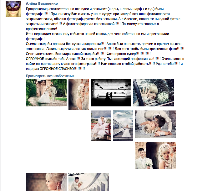 olga24 gavrilenkoЯ поняла, что могу идти в свадебные фотографы после просмотра фото Алекса..)))) Серьезно, я и лайтрумом умею экспозицию выставлять и кадрированием владею, и даже цветокоррекцией в некоторой мере  Молодцы, что переснялись, я бы наверное поступила также