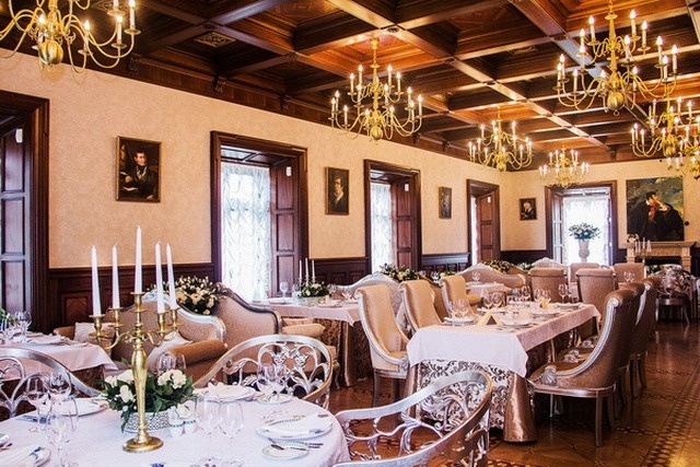 cherry-li, в каминном. Как сказал администратор, на 30 человек он подходит идеально  Все у них очень достойно, это и впечатлило. Интерьер самодостаточный, украшать зал практически не надо. Камин, опять же) Если будет дождь, не стыдно будет и регистрацию там провести  Территория тоже офигенная. Единственное, что смутло, что одновременно могут идти 4 свадьбы в соседних залах. Причем слышимость хорошая( Но, надеюсь, это не сильно испортит все.