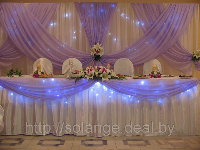 Квадраточка, и мне расскажи! Очень уже сумма приятная. Я просто тоже думала ширму за молодыми - 45$ Получехлы на стулья с бантами - около 1$ за стул (получается 90$ на всех гостей) Драпировка стола молодых тканью - 15$ Драпировка стола столика для дарения тканью 10$ + цветочные композиции на столы гостей + еще хочу на столы гостей, вдоль стола на скатерть положить полоску ткани в цвет свадьбы (ну как узкая скатерочка получается) Я просто подумала, что единственное, что мы своими силами сделать не сможем(ну или возиться не хочется) так это ширма за молодыми. Чехлы думаю сама сделать (не уверенна получится ли дешевле), хотя стулья у нас там приличные, так что можно может быть и отказаться Стол задрапировать тоже думаю можно самостоятельно, короче я не знаю и сэкономить хочится и чтоб как самодеятельность выглядело не хочу