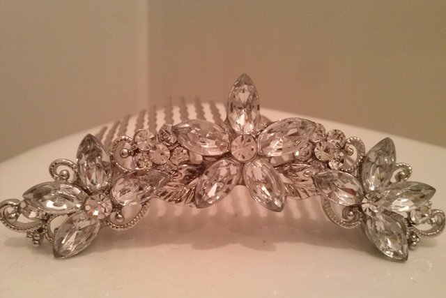 Девочки, совсем я от рук отбилась))) Балдела целый 2 недели, вообще свадьбой не занималась. Все, балдеж окончен, подготовочка продолжается! Ура, наконец-то созвонилась с кондитеорм. Как-то я благополучно призабыла, что так мы к ней и не подъехали. Договорились встретиться на неделе. Пока планируем заехать к ней во вторник. Ух, хоть бы планы не поменялись! Сегодня активно выбирала заколочку для прически, серьги и туфельки. Похоже, все это нашла))) Заколку уже купила. Огромное спасибо Настюше Анастасия stom, нашла то, что искала в Риге. Делюсь фото) Заколочка как раз такая по размеру, как я и искала. Ни маленькая, ни большая. Буду крепить ее сзади на гульке и за нее будет крепиться фата. Заколка была задачей №1, так как в следующую субботу у меня пробная прическа (Аааааааааа, очень-очень-очень жду и волнуюсь!!!!  ). Вложение: