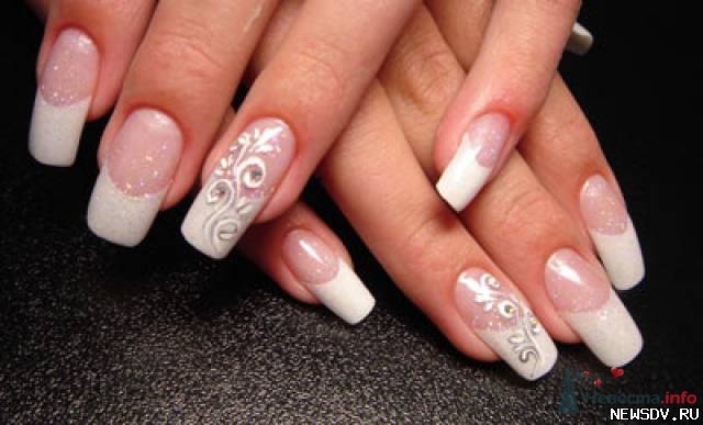 2. Прическа. Зря ты так на местных мастеров. Я знаю как минимум двух хороших - Марина Буцень и Алеся Черник. В добавок, Марина отлично делает маникюр и наращивание. К сожалению, на мою свадьбу она планировала уехать, поэтому мне пришлось искать другого мастера.... записалась к Алесе (прически она хорошо делает - это 100%, ещё она прелагает макияж, но тут я ничего не могу сказть - не видела работ). Правда, за две недели до свадьбы мне пришлось отказаться от Алеси, т.к. у нас немного перекрутилось утро дня Х... макияж мне делали в Минске, потому для удобства договорилась с другой... макияж и прическу мне делали в 4 руки (девочки между собой подружки, привыкли так работать). Макинюр мне за день до свадьбы делала Марина. Был фрэнч, а на безымянных пальцах из акрила были нежные белые цветы.